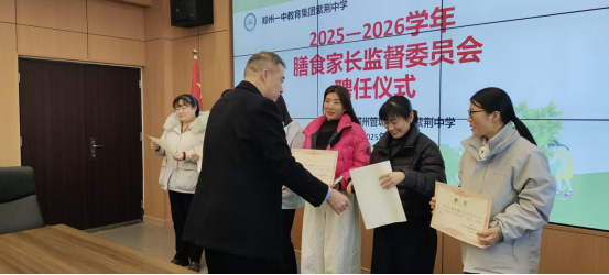 一纸聘书,万分责任。在庄重的仪式中,张校长为新一届膳食监督家长委员会成员逐一颁发了聘书。这份聘书,象征着荣誉,更承载着沉甸甸的责任与全校师生的信任。新任委员们接过聘书,也接过了监督、沟通与共建的使命,纷纷表示将不负重托,履职尽责。