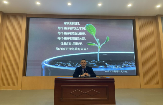 张校长首先对学校发展进行介绍,让家长了解学校的办学理念、办学特色,提升家长对学校的了解与认同。随后围绕“沟通、信任、共育”三大核心,他结合生动真实的教育案例,展开了深入浅出的分享。他深刻指出,每个孩子都与众不同,每个孩子都如此重要,每个孩子都值得关爱,只有家校携手,才能助力孩子开创美好未来。此次讲座不仅有对教育政策的解读,更有对家庭教育实践的细致指导,引导家长们成为更智慧、更有温度的“成长合伙人”。现场家长们凝神聆听,频频颔首,在思想的碰撞中收获了满满的启迪。