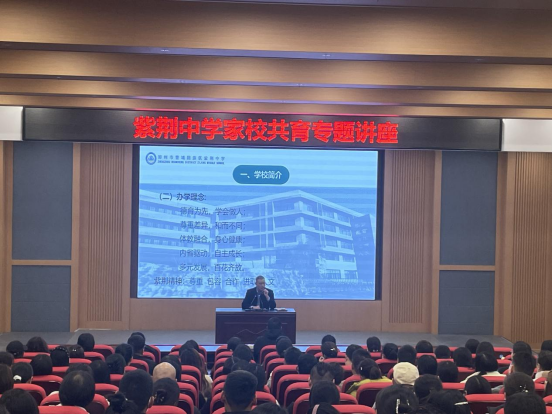 七年级家长会首先在学校报告厅温情启幕。紫荆中学党支部书记、校长张军才为七年级家长们带来了“家校共育——助力孩子健康成长”专题讲座。讲座由紫荆中学党支部副书记梁爱学主持。