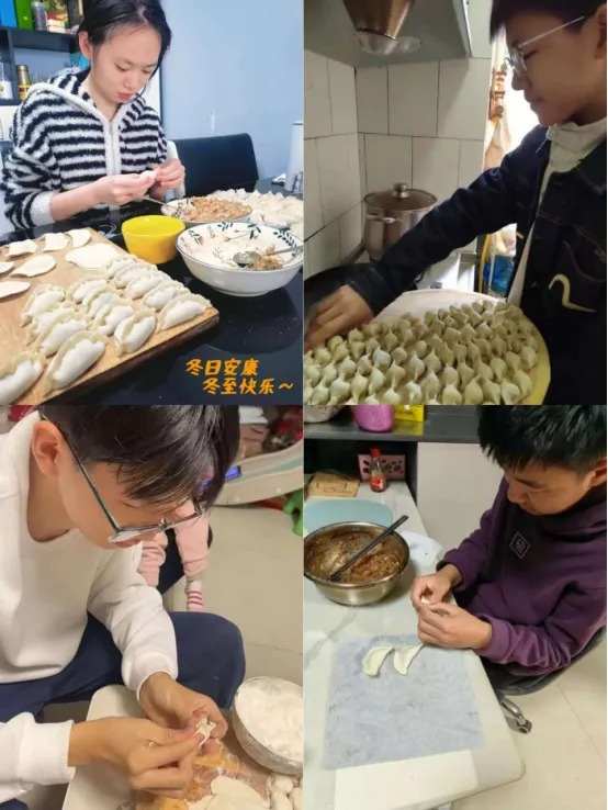 冬至这一天,同学们在家中不仅学会了调馅、擀皮、包捏等包饺子的基本技能,更在与面粉、馅料的“博弈”中体会到了劳动的艰辛与快乐。从一开始的手忙脚乱到后来的熟能生巧,从包出“歪瓜裂枣”的尴尬到呈现“元宝”造型的自豪,孩子们在动手中不仅锻炼了生活自理能力,更深刻理解了“一粥一饭,当思来处不易”的含义。这次活动让孩子们在温馨的家庭氛围中感受到了团圆的意义,让传统文化在亲子互动中得到了最温暖的传承。家长们纷纷表示,看着孩子认真包饺子的模样,真切感受到了他们的成长与懂事,这顿充满劳动汗水的冬至饺子,吃起来格外香甜。此次冬至实践活动,不仅是一次传统习俗的重温,更是一堂生动的劳动教育课!