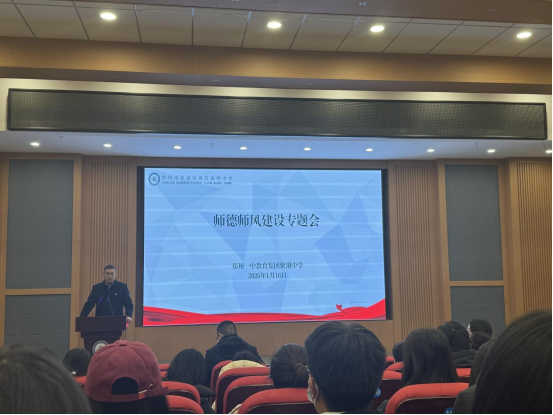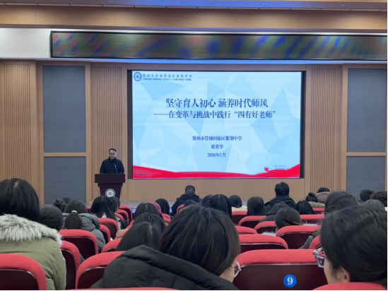 为深入贯彻落实新时代教师队伍建设要求,持续加强师德师风建设,引导全体教师争做有理想信念、有道德情操、有扎实学识、有仁爱之心的“四有”好老师,1月16日下午,郑州市管城回族区紫荆中学在学校报告厅召开了“坚守育人初心涵养时代师风”专题讲座,会议由学校党支部副书记梁爱学主持,全体教师共同参加。